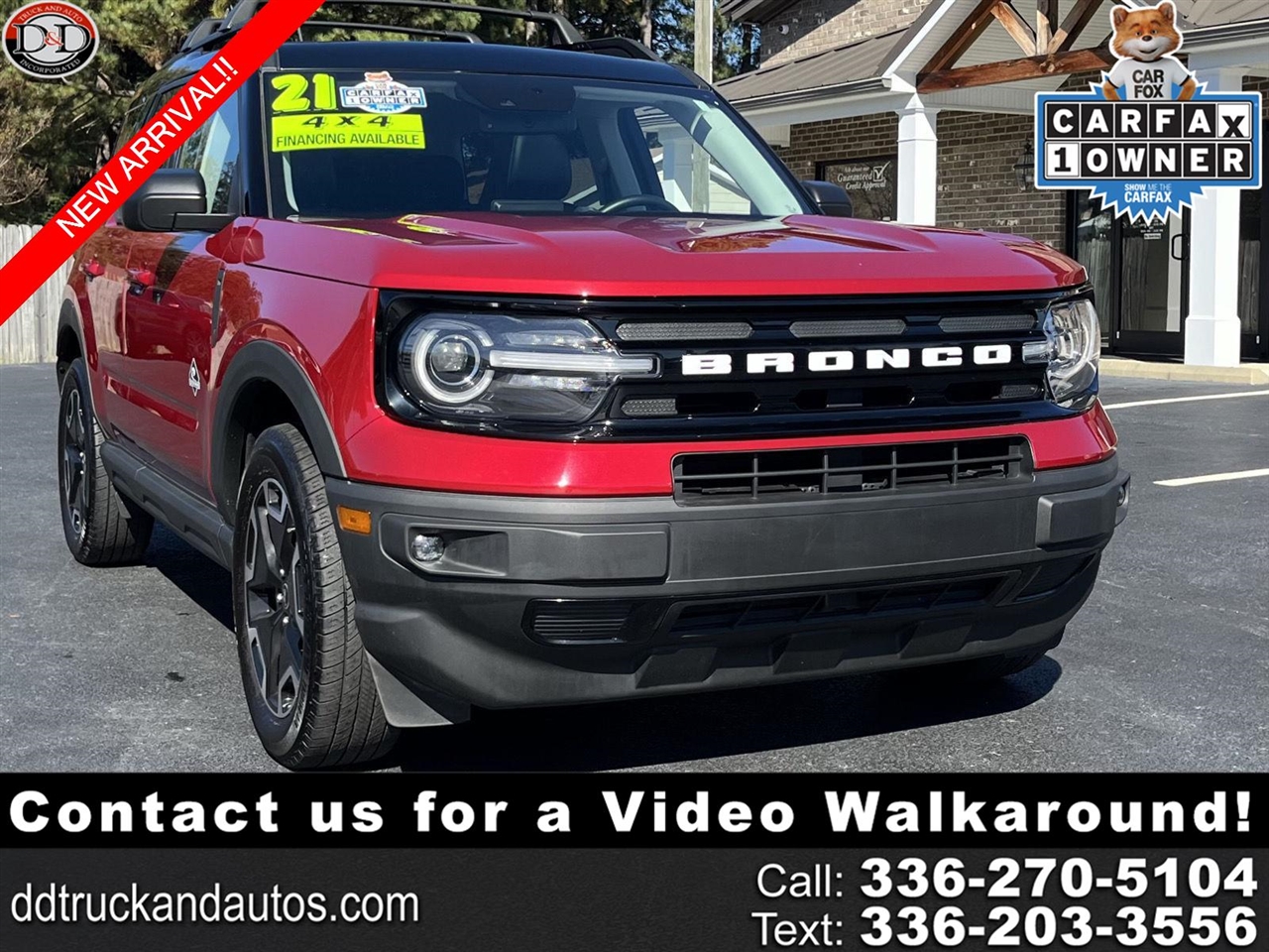 Elevate your daily commute with a refreshed perspective behind the wheel of a 2021 Ford Bronco Sport Outer Banks in Rapid Red Metallic Tinted Clearcoat with 74,237 miles.NOW AVAILABLE at D & D Truck and Auto Inc!Contact our knowledgeable team today at 336-270-5104. We are located at 1226 S MAIN ST GRAHAM NC 27253. **1 OWNER**, **LOCAL NC VEHICLE**, **HEATED SEATS**, **HEATED STEERING WHEEL**This vehicle is equipped with: